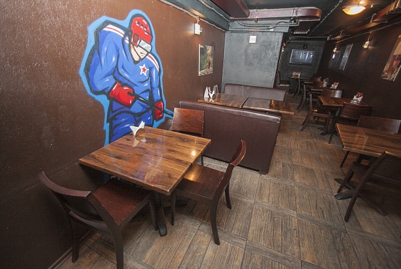 В 3-х минутах ходьбы от метро «пр. Большевиков» и ледового дворца. Двух-уровневый бар, 270 посадочных мест. Оба уровня оснащены плазменными панелями, проводятся трансляции знаковых спортивных событий, сетов в формате экстрим-спорт, видеоинсталяций в поддержку звукового оформления заведения. Здесь всегда большой выбор разливного пива, вкусная еда, качественное обслуживание, атмосфера живого общения в сочетании с очень доступными ценами. На летний период времени деньги за бронь берутся только на время футбола! В баре готовят вкусную итальянскую пиццу.